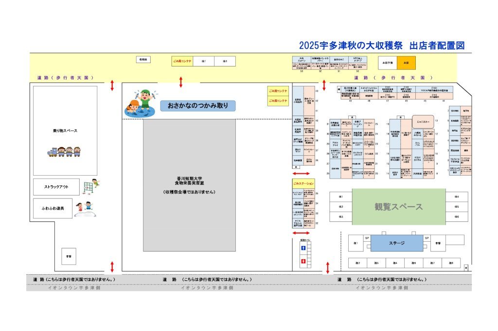 | イベント内容 | ・秋のグルメや特産品などの出店が50ブース以上 ・キャラクターショー ・花の苗木プレゼント(1日のみ、合計2,000鉢)協賛:YKKAP労働組合四国支部 ・オリーブガイナーズのストラックアウト&スピードガンコンテスト ・ミニ電車乗車体験 ・ふわふわドーム ・魚のつかみどり(両日200名、合計400名) ・讃岐のり染のオリジナル手ぬぐいプレゼント(シェアサイクルスタンプラリー参加者限定、先着50枚) |